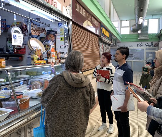 Els alumnes del curs Bàsic 2 del Servei Local de Català de Sant Andreu de la Barca, del Consorci per a la Normalització Lingüística, han visitat el Mercat de Sant Andreu de la Barca per tal de consolidar i practicar els continguts apresos a l'aula sobre aliments i compres.