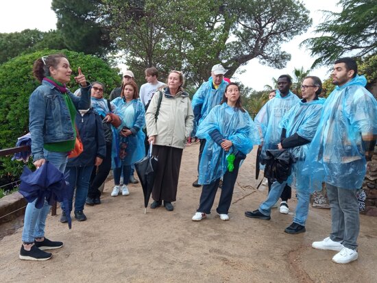 Malgrat la pluja, un grup d'alumnes i de participants a Voluntariat per la Llengua de Palafrugell van poder seguir aquest dimecres, 15 de maig, la ruta guiada per la Fundació Josep Pla als Jardins de Cap Roig.