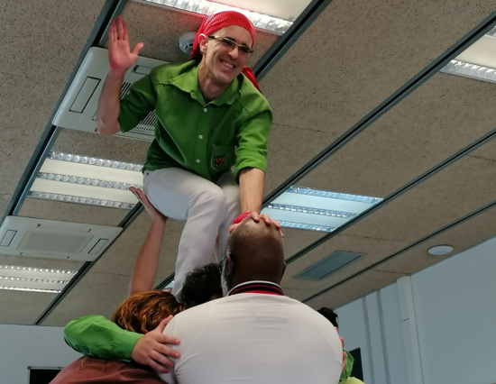 Al final de l'exposició, els castellers van proposar fer un petit castell i uns quants alumnes s'hi van animar. Mitjançant les instruccions dels castellers i amb l'emoció a flor de pell de tots els assistents, van fer un intent de pilar de dos fantàstic!