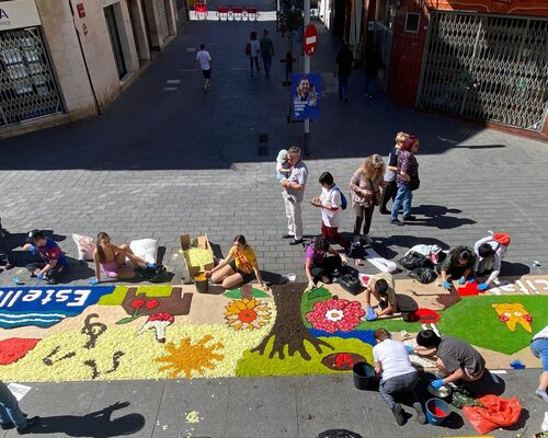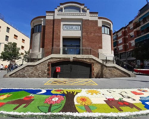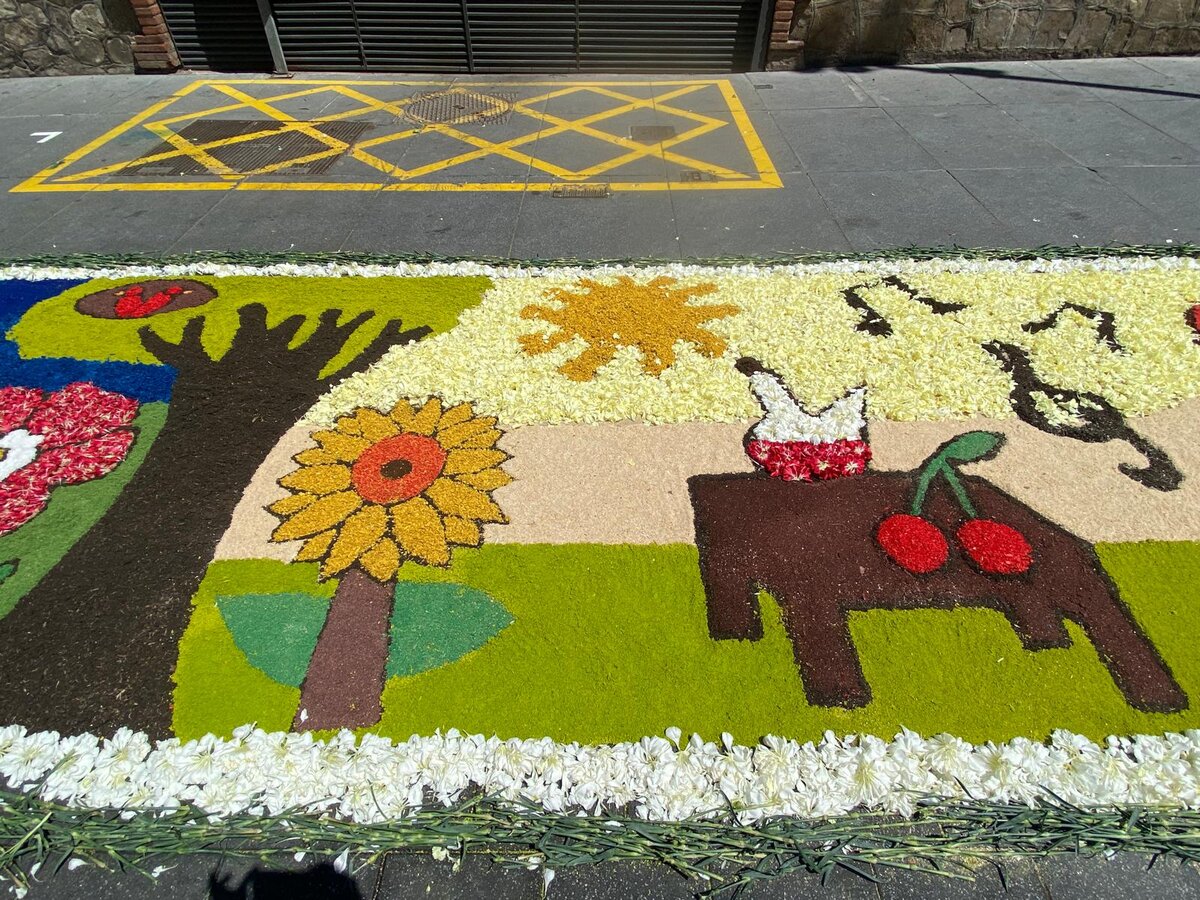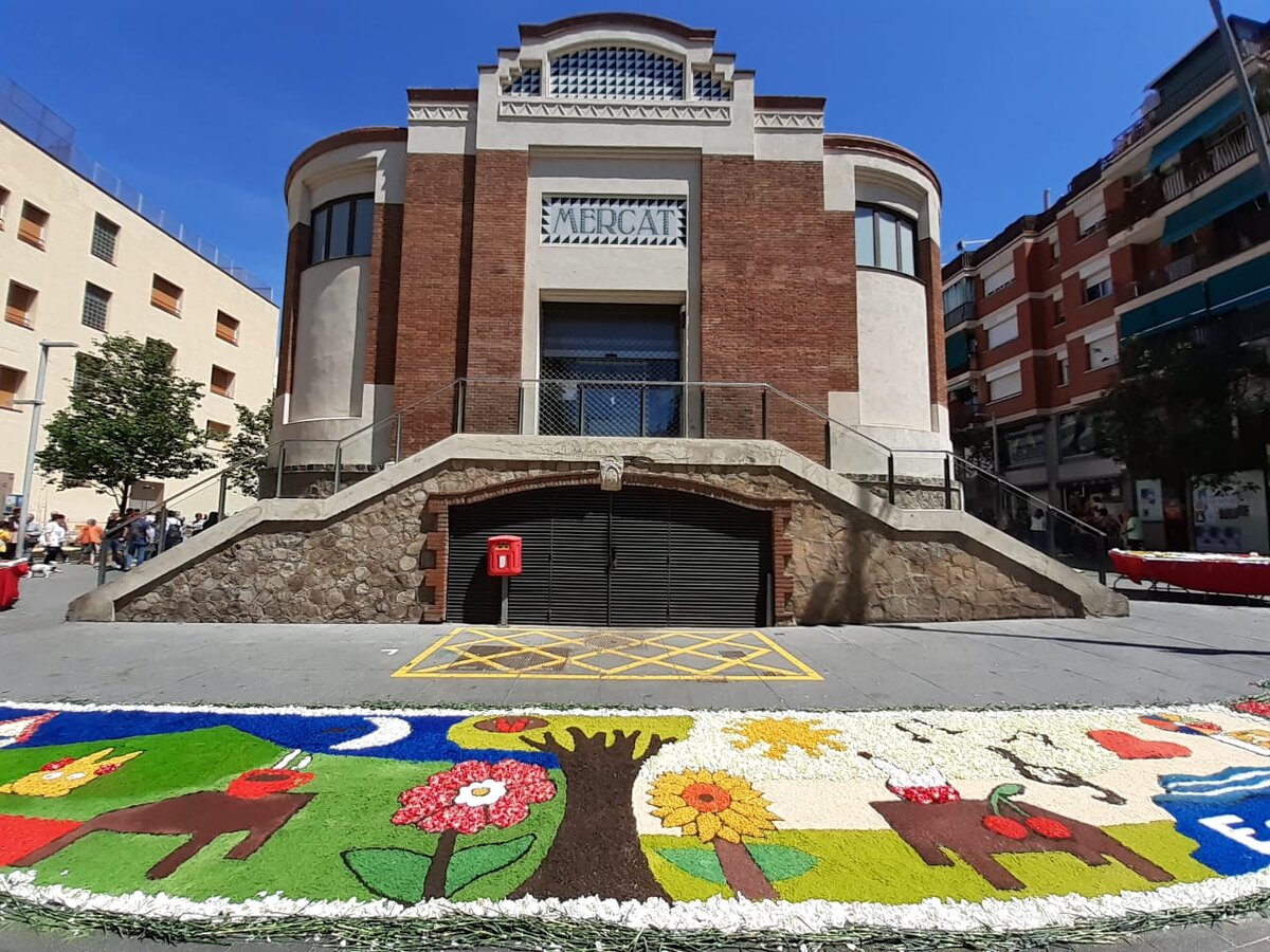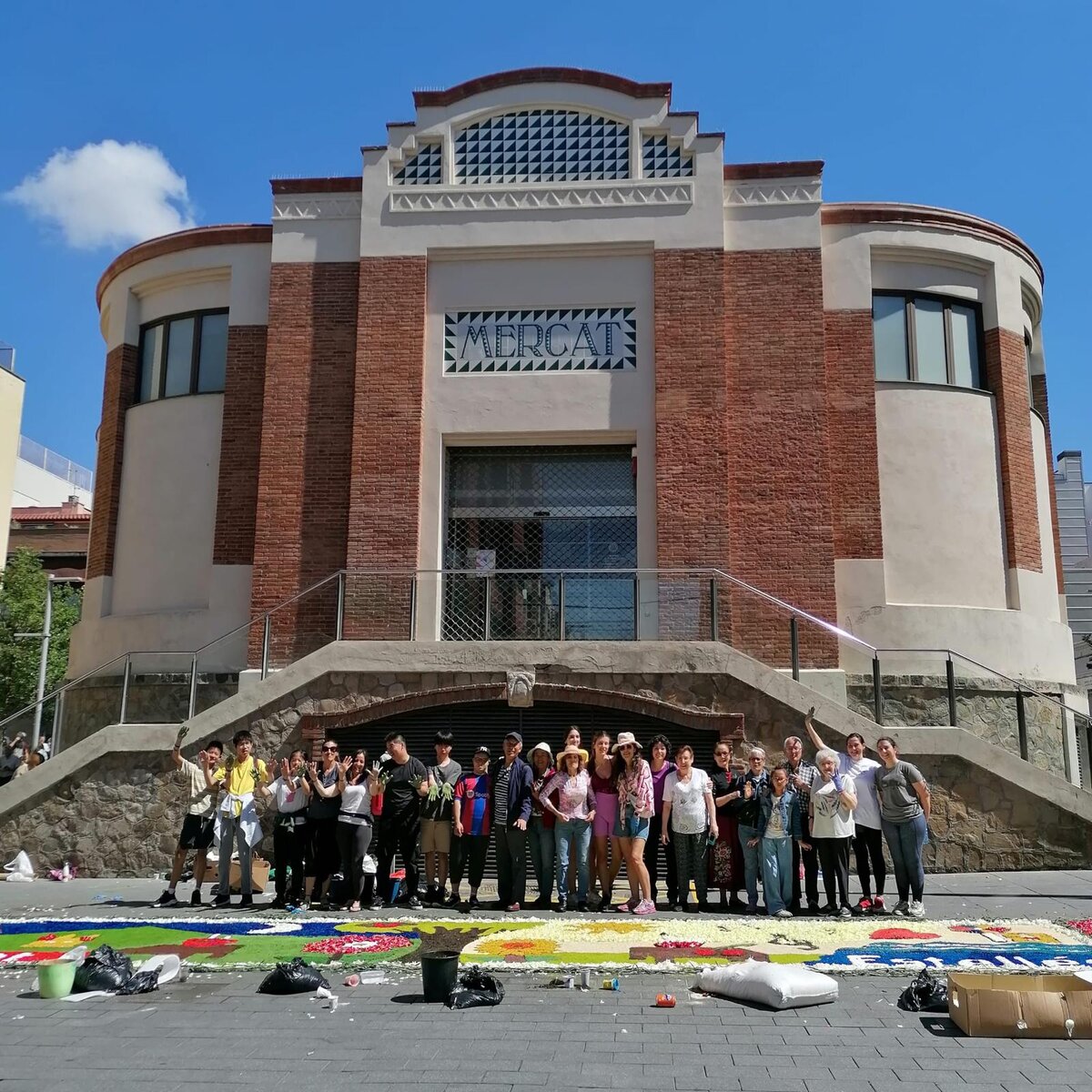 Tots els districtes de Santa Coloma fan catifes florals el dia de Corpus al voltant del Mercat de Sagarra