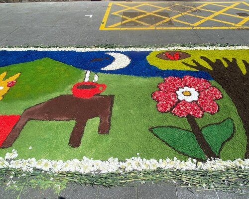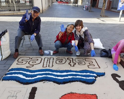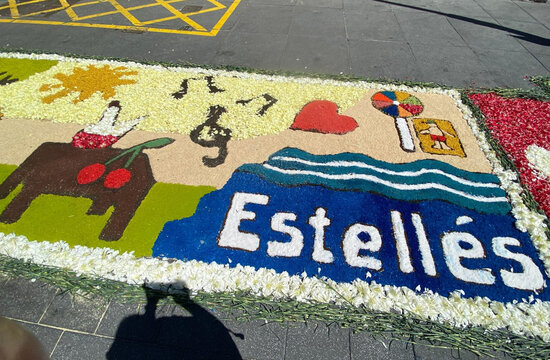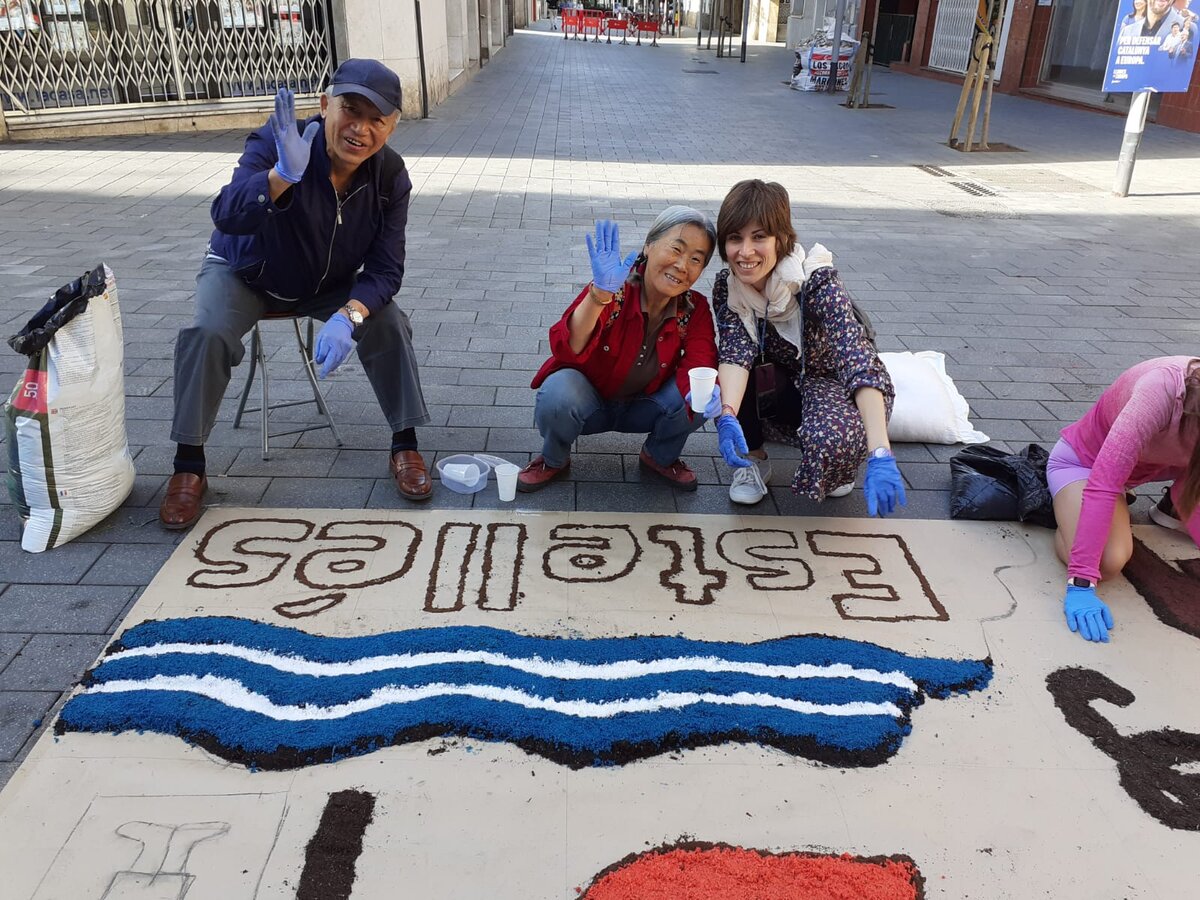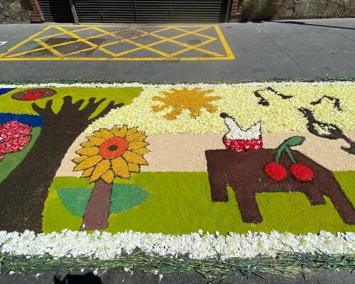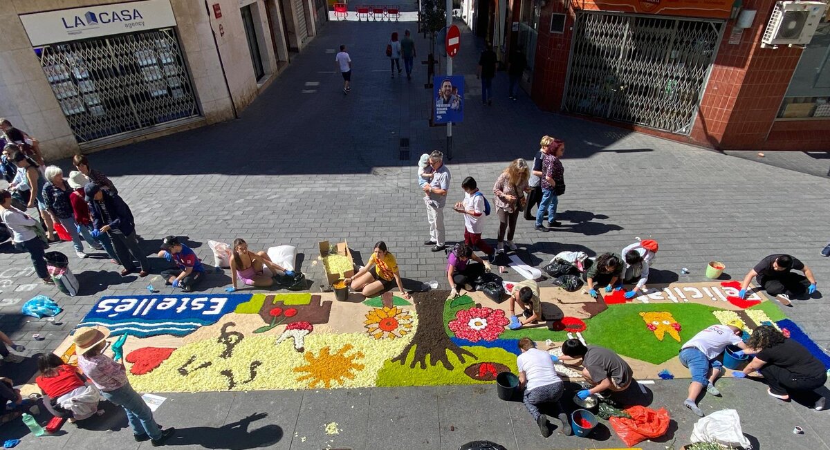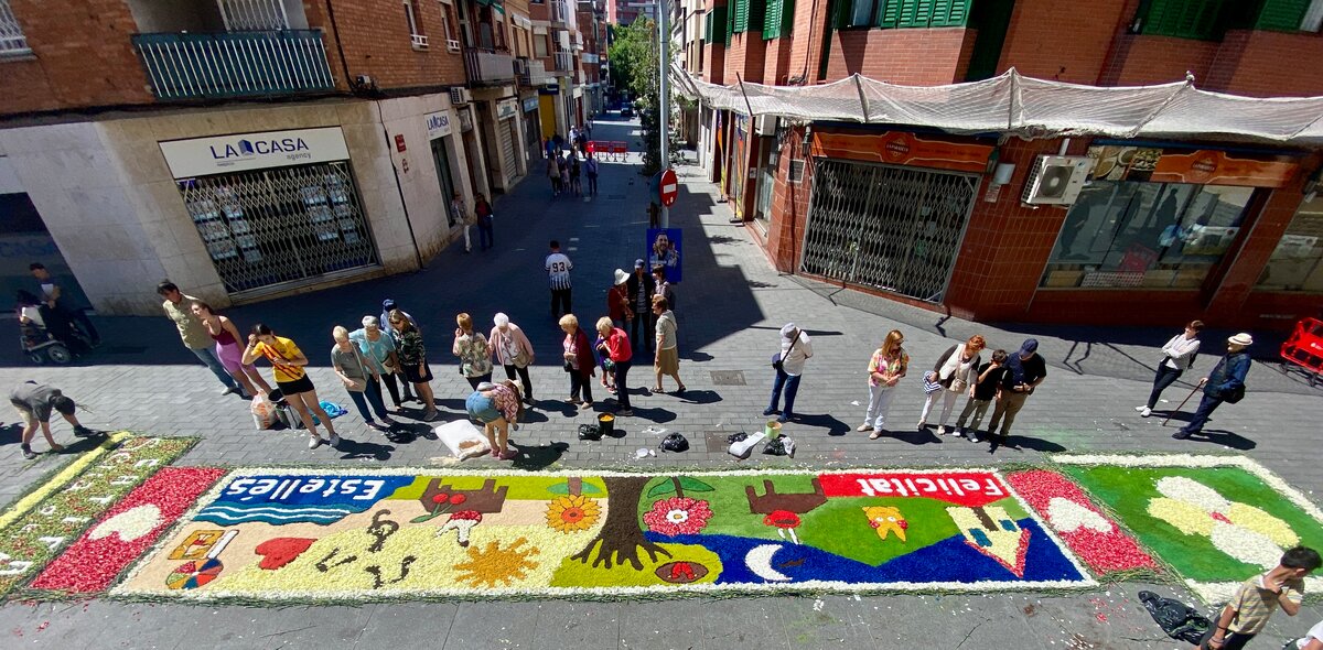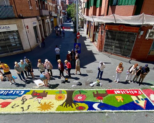 Tots els districtes de Santa Coloma fan catifes florals el dia de Corpus al voltant del Mercat de Sagarra