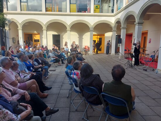 L'acte ha finalitzat amb un petit refrigeri al pati de Les Escoles i les cançons que han cantat alumnes i professors de l'escola Tallers de Música.