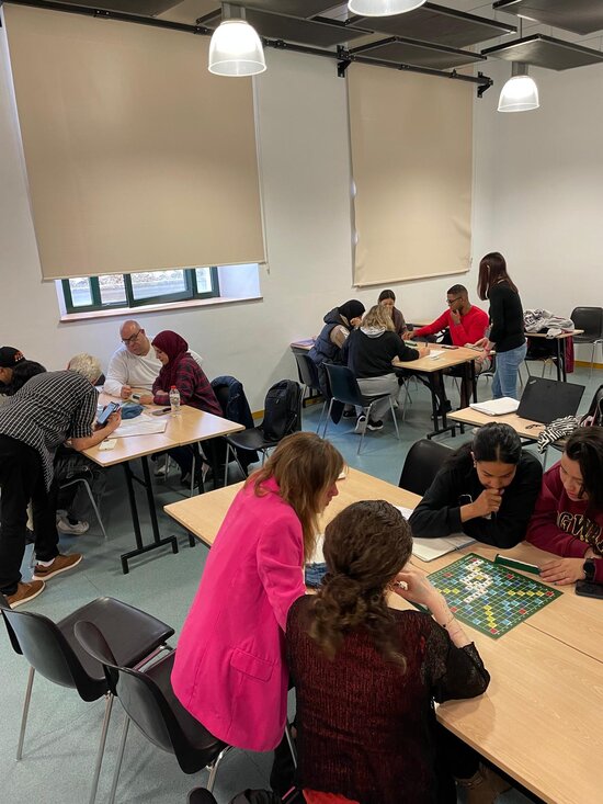 El joc de Scrabble és una bona estratègia lúdica per a l'aprenentatge de les llengües perquè s'amplia vocabulari, es consoliden estructures morfosintàctiques i es fixa l'ortografia dels mots. Per això des de l'Oficina de Català s'organitzen aquests tallers de forma periòdica per reforçar i enriquir el bagatge lingüístic de l'alumnat.