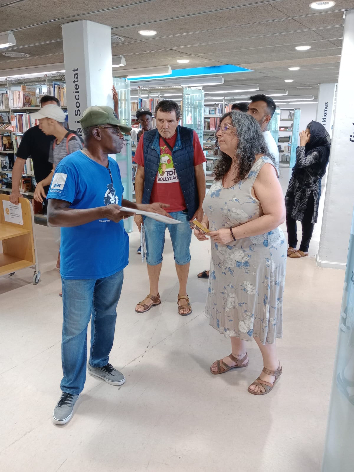 D'entrada, vam anar a l'espai infantil i juvenil, on els alumnes van poder emplenar la fitxa per fer el carnet de la biblioteca. La van lliurar i, mentre els feien el carnet, vam baixar a l'espai per a adults. Allà, la Mercè els va adreçar a les àrees que els interessaven especialment (cuina, tecnologia, esports, llengües, etc.) i també va explicar-los els tipus de documents que es poden endur en préstec. Abans de marxar, van passar a recollir el carnet.