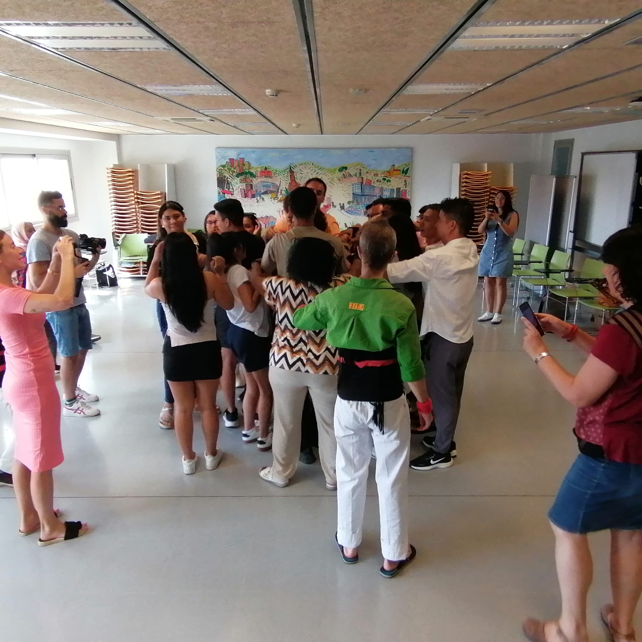 Els Laietans van visitar els cursos d' Inicial i Bàsic 1 per fer un taller casteller. Primer van explicar la roba i els colors que porten, després van explicar els diferents tipus de castells que es poden fer i finalment van convidar a tothom a unir-se per fer una pinya!