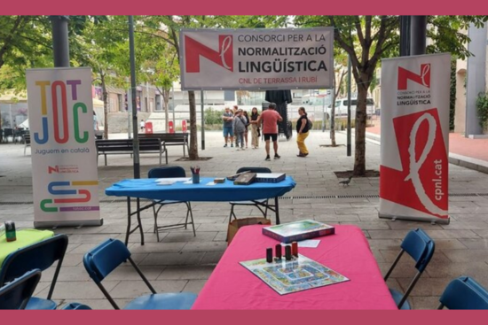 El CNL de Terrassa i Rubí va muntar la parada d'informació sobre els serveis del centre i sobre l'aplicació TotJoc en què les famílies poden trobar més de 1000 jocs en català i les botigues i entitats adherides al programa. També hi havia dues taules amb jocs on petits i no tan petits van poder jugar amb la llengua.