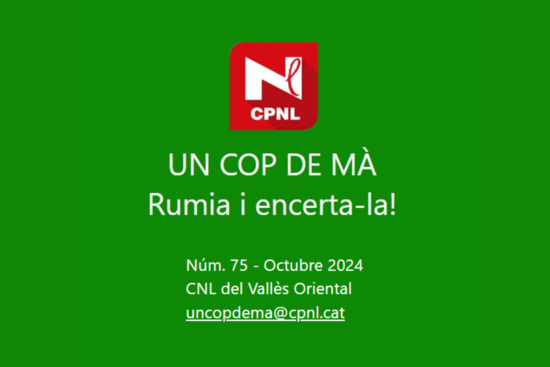 El Centre de Normalització Lingüística del Vallès Oriental ha publicat el número 75 del qüestionari lingüístic Un cop de mà. Rumia i encerta-la!, un qüestionari breu en què s’han d'omplir buits, triar opcions i escriure solucions.