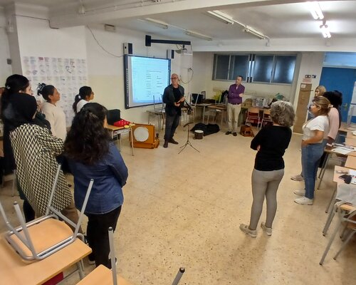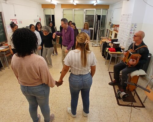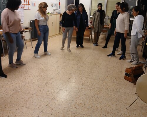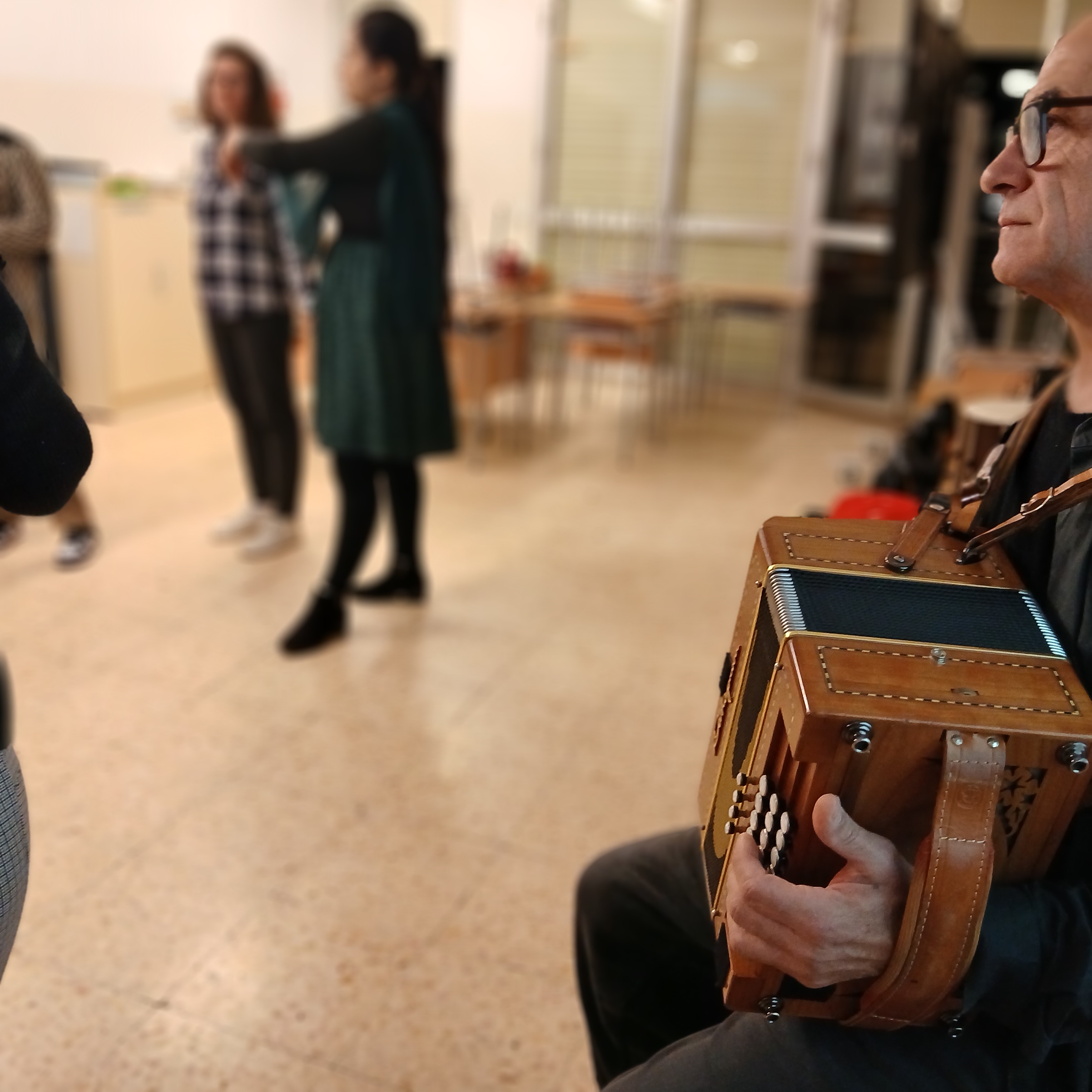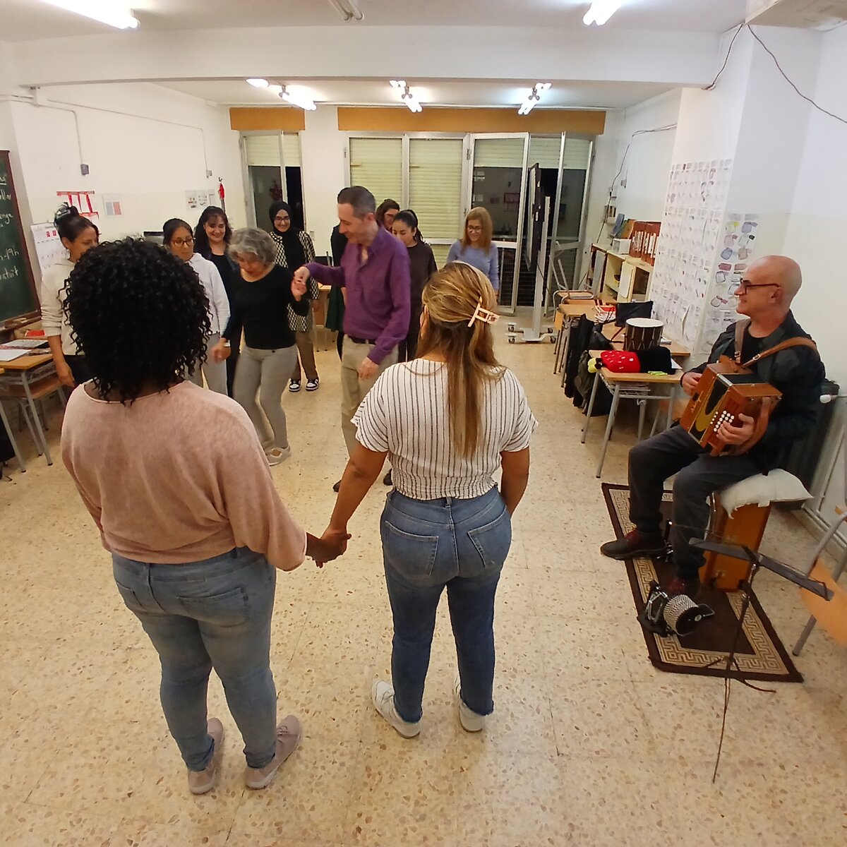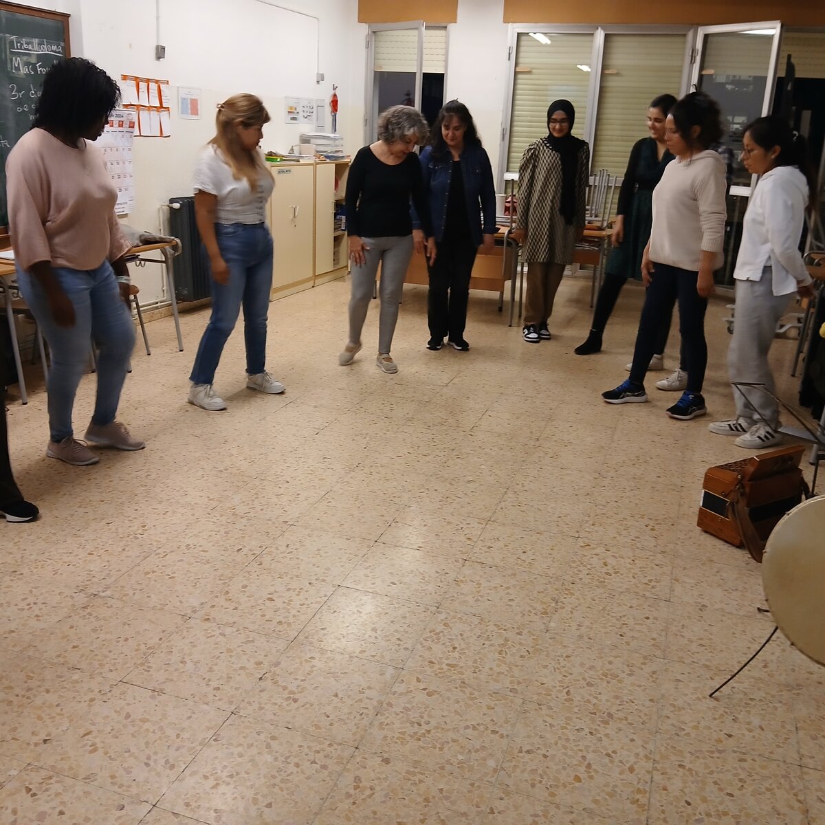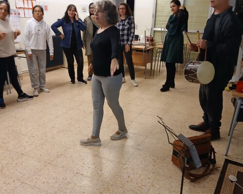 En aquesta sessió, Fàtima Ortega, la presidenta, va fer que parlés tothom i va donar les instruccions per ballar mentre que Daniel Tomàs, el músic, tocava l'acordió, el flabiol i el tamborí. Van aprendre a ballar una sardana curta i dues cançons occitanes: la xampanya i el cercle cercassià.