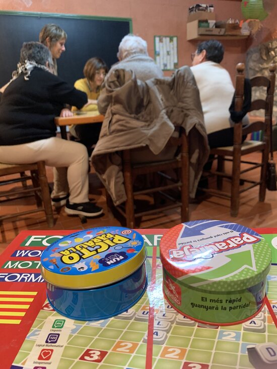 La Biblioteca ofereix, entre altres serveis, el préstec de jocs de taula, participa en el programa del Voluntariat per la llengua i allotja dos grups d'aprenents de català amb voluntariat. La sessió de jocs en català s'emmarca en aquest context de foment de l'ús de la llengua, que s'impulsa des d'aquest servei municipal.