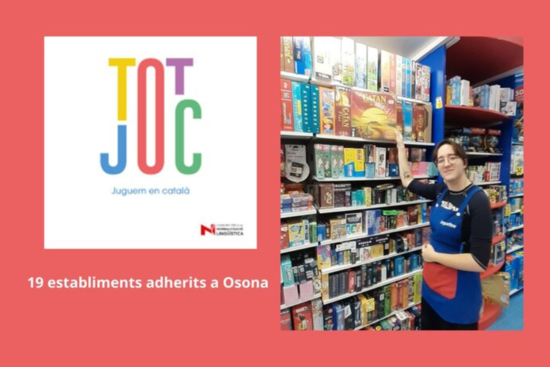 A Osona hi ha 19 establiments que s'han adherit al programa TotJoc: a Manlleu, Contijoch i Joguines Manlleu; a Torelló, Vuk, Punt Font, Cu-cut, Colors i Vídeo Oca; a Vic, Gargamel, Abacus, Juguettos, Muntanya de Llibres, Vídeo Oca, i les 2 botigues Drim; a Taradell, Vídeo Oca; a Tona, Eines per aprendre i Vídeo oca, i a Malla, l'Esclat de Malla i Drim. A totes hi trobareu el fullet amb el QR que dona accés al catàleg de cerca de jocs en català i també cartes de Reis en català.