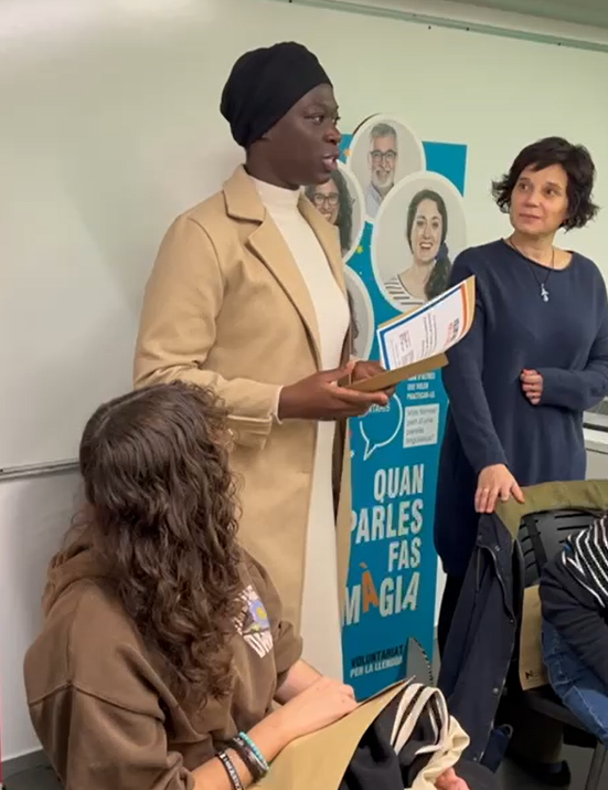 Victoria (aprenenta): "Més que un voluntariat és una conversa amb un amic, molt agradable. Parlem de cultura catalana."