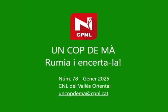 Restem, com sempre, a la vostra disposició per respondre qualsevol pregunta o consulta que ens vulgueu formular i us animem a fer-nos arribar (uncopdema(ELIMINAR)@cpnl.cat) idees o suggeriments que procurarem incloure en noves edicions.