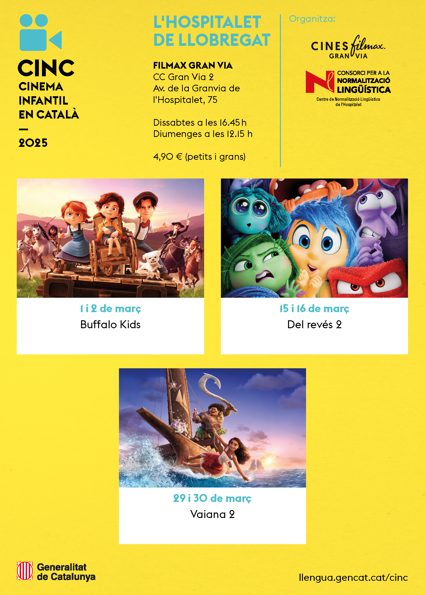 El cicle de Cinema Infantil en Català té l'objectiu de difondre el català en els espais d'oci familiar, fora de l'àmbit escolar, i ja se n'han fet diverses edicions amb molt d'èxit. El CINC neix de l'acord entre el Centre de Normalització Lingüística de l'Hospitalet i Filmax per projectar en català pel·lícules infantils a preu reduït.