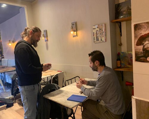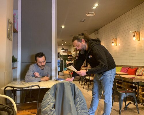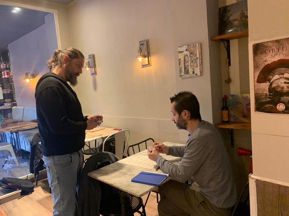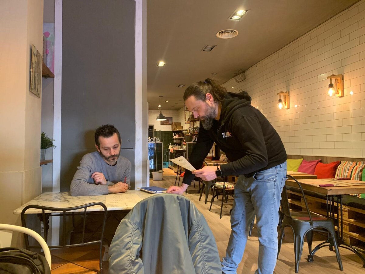 En aquest cas, Francesco, el propietari, fa anys que viu a Catalunya i parla el català, de manera que l'atenció en aquesta llengua ja és un tret que caracteritza el seu negoci. Per la seva banda, el seu company Claudio, que fa menys temps que és aquí, també vol aprendre l'idioma.