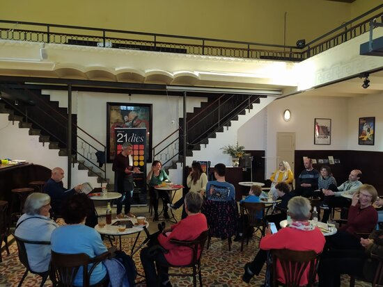 En aquests moments '21 dies. D'entrada, en català' ha passat per diferents poblacions de les comarques gironines (Santa Coloma de Farners, Breda, Arbúcies, Blanes, Lloret, Caldes de Malavella, Olot, Besalú, Figueres, Girona, Salt, Llagostera...) i d'arreu de Catalunya (Sabadell, Terrassa...).