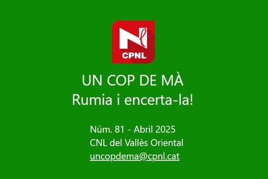 Restem, com sempre, a la vostra disposició per respondre qualsevol pregunta o consulta que ens vulgueu formular i us animem a fer-nos arribar (uncopdema(ELIMINAR)@cpnl.cat) idees o suggeriments que procurarem incloure en noves edicions.