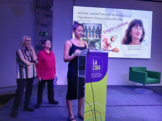 Tres alumnes del nivell Elemental van llegir poemes a la Ciba en el marc de 'Dones i poesia. Dones llegim poemes de dones'