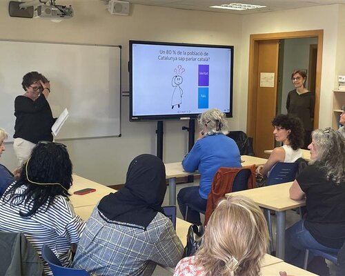 Després de les presentacions, es va proposar als voluntaris i aprenents de participar en un joc 'Què en saps del català?' en forma de qüestionari de sensibilització, per posar-se a prova i ser més conscients dels seus usos lingüístics. A la posada en comú, els participants van parlar sobre qüestions relacionades amb la percepció de l'ús del català en el dia a dia, la integració de les persones nouvingudes a través de la llengua o com perceben la situació del català. També van comentar que cal més consciència al carrer, ja que hi ha molta gent que canvia al castellà quan veu una persona que té uns trets que no identifica com a catalans, però que es tracta d'una conducta (hàbit) sovint basada en prejudicis.