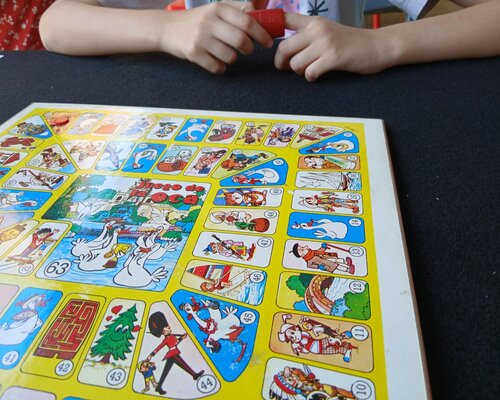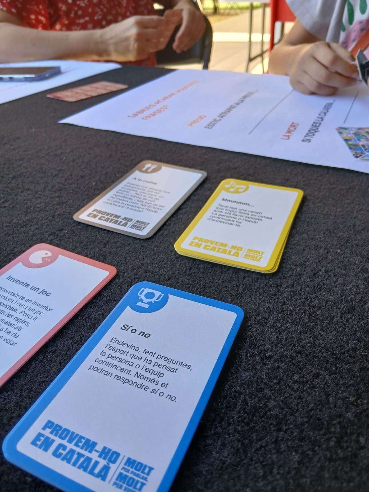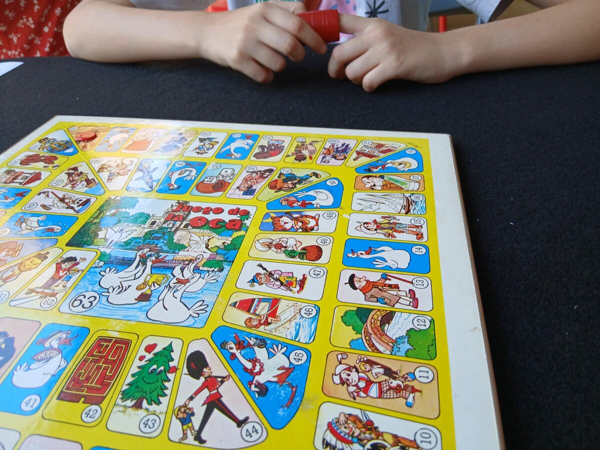 A més a més de jugar a l’oca com estava previst, teníem a l’abast dels infants àlbums d’adhesius de la Queta i jocs de cartes i també vam fer algunes partides amb les cartes de la Queta.