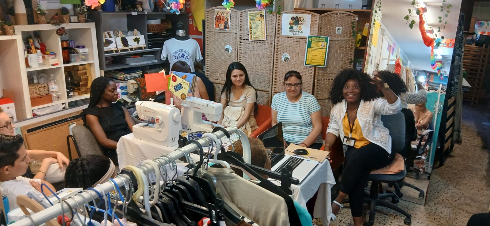 L'alumnat del Bàsic 1 va visitar el local de la botiga de roba solidària Unió Segones Oportunitats, on Yolanda Akpoli, presidenta de l’entitat, va fer una explicació sobre l'origen del projecte i la seva evolució, i Grace Ayimontche, secretària, també va parlar.