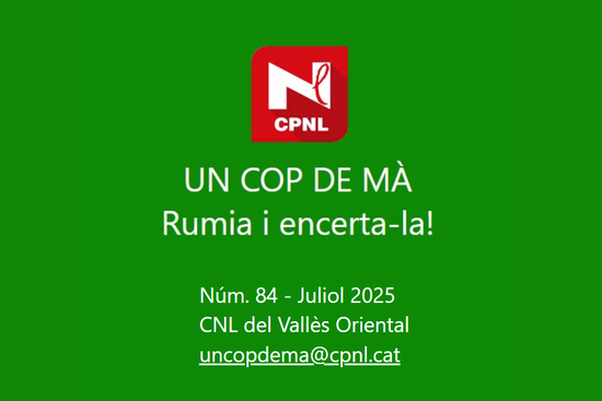 Restem, com sempre, a la vostra disposició per respondre qualsevol pregunta o consulta que ens vulgueu formular i us animem a fer-nos arribar (uncopdema(ELIMINAR)@cpnl.cat) idees o suggeriments que procurarem incloure en noves edicions.