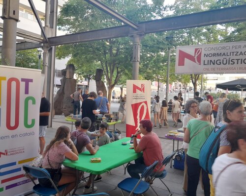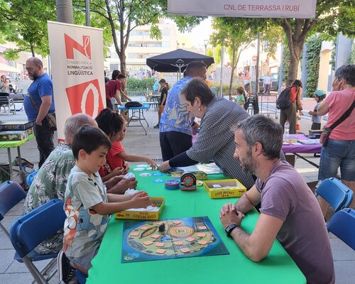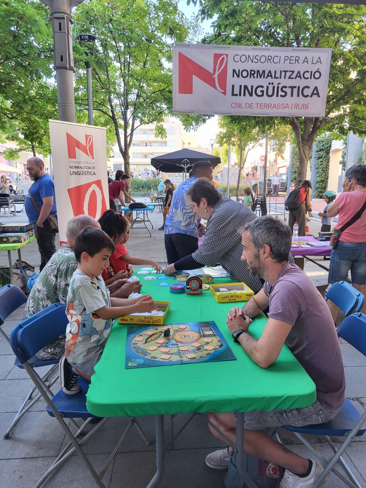 El CNL de Terrassa i Rubí va muntar una parada informativa sobre el programa Totjoc, en què les famílies poden trobar més de 1.000 jocs en català i les botigues i entitats adherides al programa. També es van repartir exemplars del Vocabulari de jocs de taula i es va donar informació dels diferents serveis que ofereix el Centre de Normalització Lingüística.