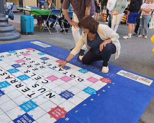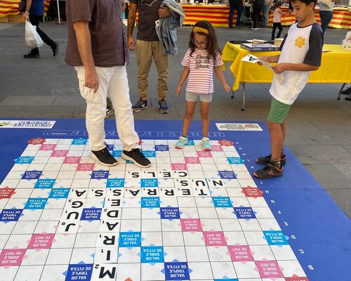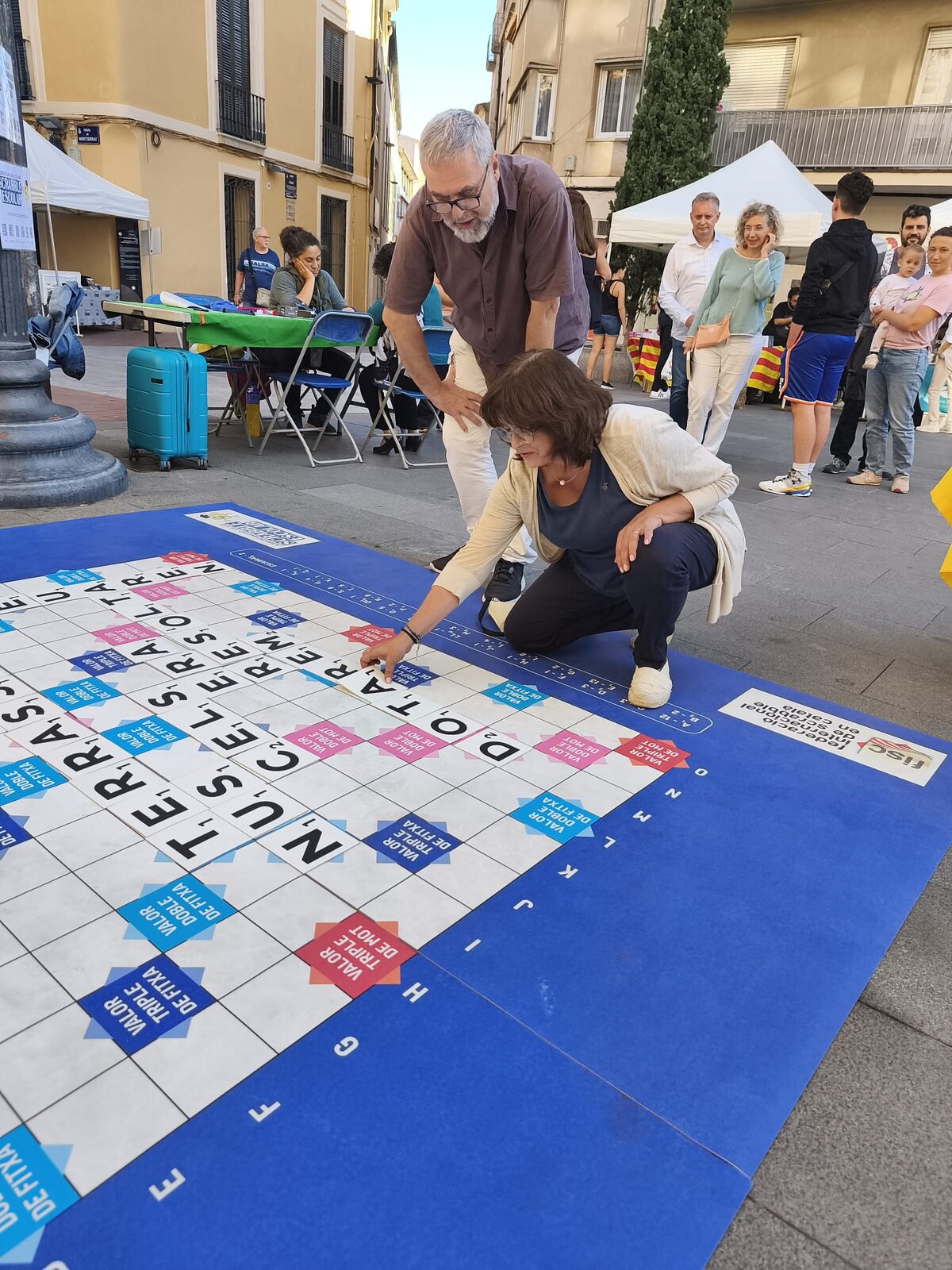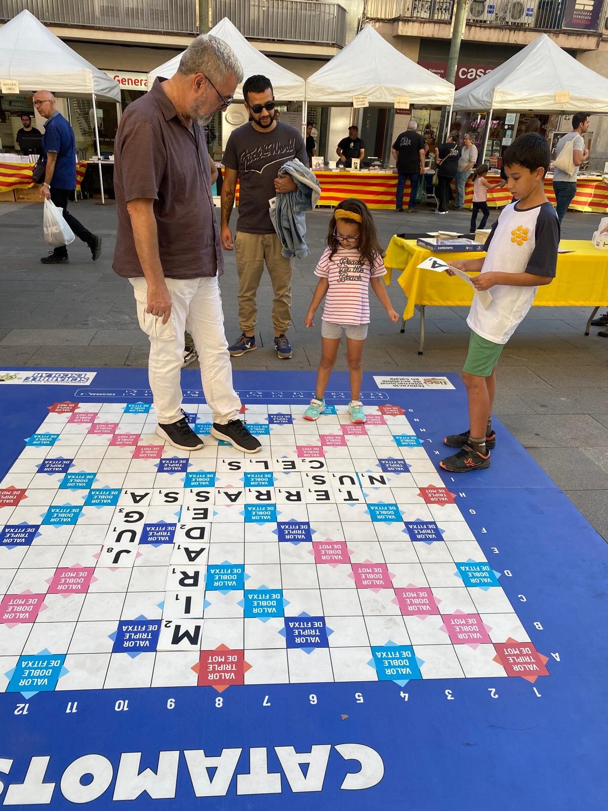 El taulell gegant de Scrabble va ser un pol d’atracció durant tota la jornada organitzada per promoure el català d'una manera divertida i participativa
