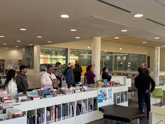 La directora d'aquest ens públic col·laborador del programa Voluntariat per la llengua, Elisenda Pintor Méndez, i el tècnic, Xavier Vidal, els han rebut i els han explicat com poden fer servir la biblioteca com un nou espai d'aprenentatge i d'ús del català.