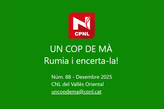 Restem, com sempre, a la vostra disposició per respondre qualsevol pregunta o consulta que ens vulgueu formular i us animem a fer-nos arribar (uncopdema(ELIMINAR)@cpnl.cat) idees o suggeriments que procurarem incloure en noves edicions.