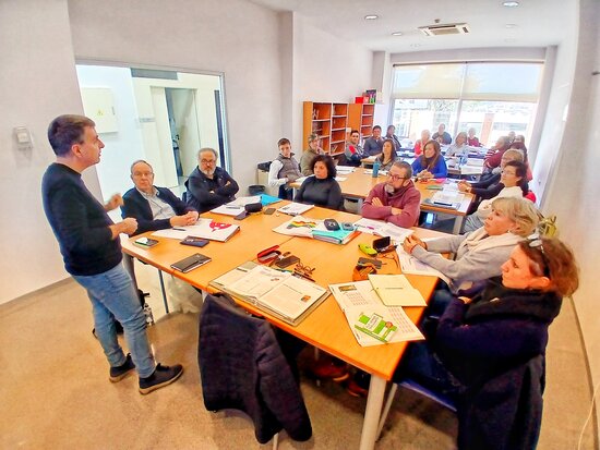 Marc Piera, director del Centre de Normalització Lingüística (CNL) Baix Llobregat Nord, del Consorci per a la Normalització Lingüística (CPNL), ha visitat aquest mes de febrer l'alumnat del curs Intermedi 2, que el Servei Local de Català de Sant Vicenç dels Horts imparteix al Casal Cívic i Comunitari Sant Vicenç dels Horts-Sant Josep.