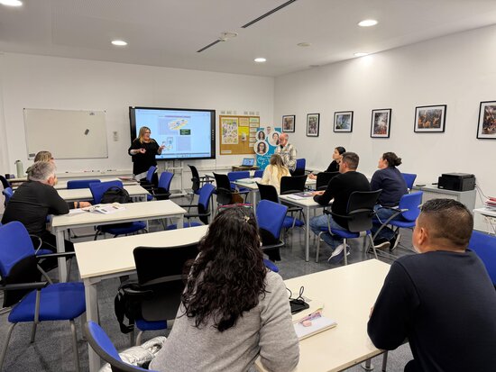 Dos testimonis del Voluntariat per la llengua visiten els alumnes del Bàsic 3 de Castellbisbal