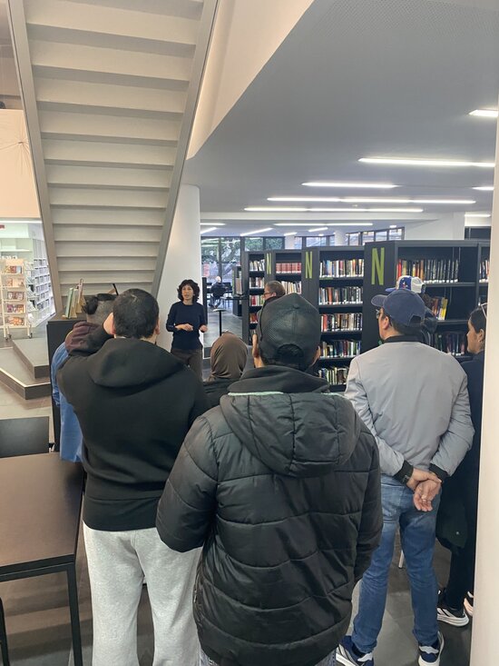 El passat 24 de febrer, l'alumnat de nivell bàsic 2 del Ripollès va visitar la Biblioteca Lambert Mata de Ripoll en una sortida pensada per conèixer de primera mà el funcionament d'aquest equipament. El personal de la biblioteca va guiar els alumnes en el recorregut per l'espai i els va ensenyar a demanar i retornar llibres i altres materials en préstec.