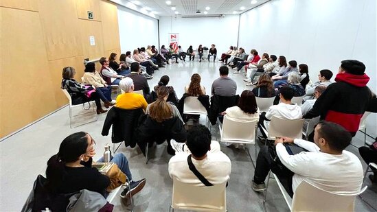 La trobada aplega alumnat de diferents nivells per practicar el català amb l'escriptora