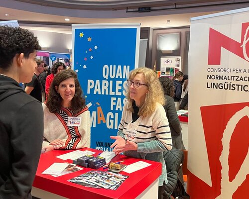 Bona part de l'equip del Servei hi ha participat i ha dinamitzat l'espai amb un joc del tabú, una activitat participativa que ha tingut molt bona acollida entre els assistents i que ha permès apropar la llengua catalana al jovent de manera lúdica i divertida.