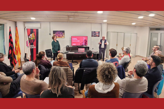 En aquestes sessions formatives, junta directiva (inclosa la presidenta, Mònica Balsells), coordinadors de les diverses seccions i personal de recepció i administració, de neteja i de manteniment, han conegut dades de coneixement del català i han reflexionat sobre els usos lingüístics (els personals i els institucionals) i les conseqüències que té la tria de la llengua que fa cada parlant.