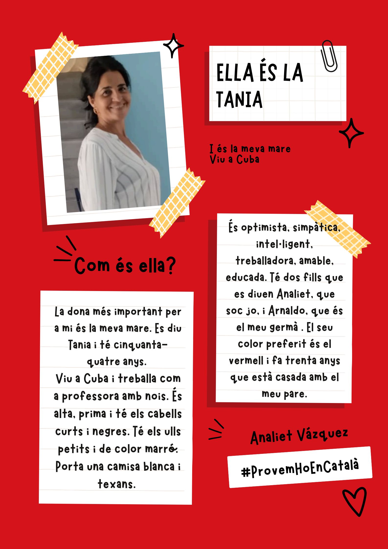 Amb els continguts de les primeres lliçons els alumnes aprenen a descriure’s a si mateixos i a la seva família. L’objectiu d’aquesta activitat és demostrar als alumnes del nivell Bàsic 1 que són capaços d’aplicar els coneixements que estan adquirint a classe amb un producte real: una exposició!