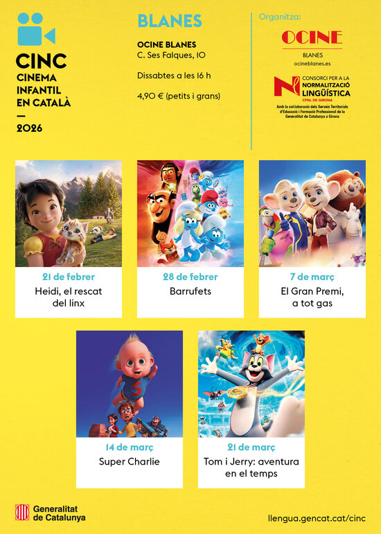 El CINC es fa també en altres poblacions de Catalunya. Consulteu-ne tota la programació a: llengua.gencat.cat/cinc o a la programació dels OCINE Blanes.