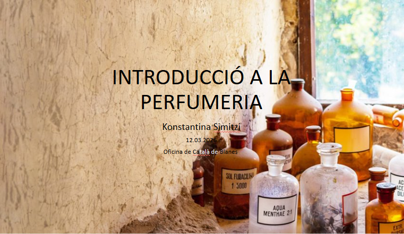 El dijous 12 de març l’alumna Konstantina Simitzi va passar d’alumna a professora per mostrar les beceroles de la perfumeria, un ofici misteriós, selecte i una mica desconegut. Va ser tot un repte preparar tota l’exposició en català, que va resultar interessantíssima i molt pràctica, ja que què els alumnes van aprendre a identificar diferents fragàncies i van gaudir d'allò més descobrint tot un món força desconegut.