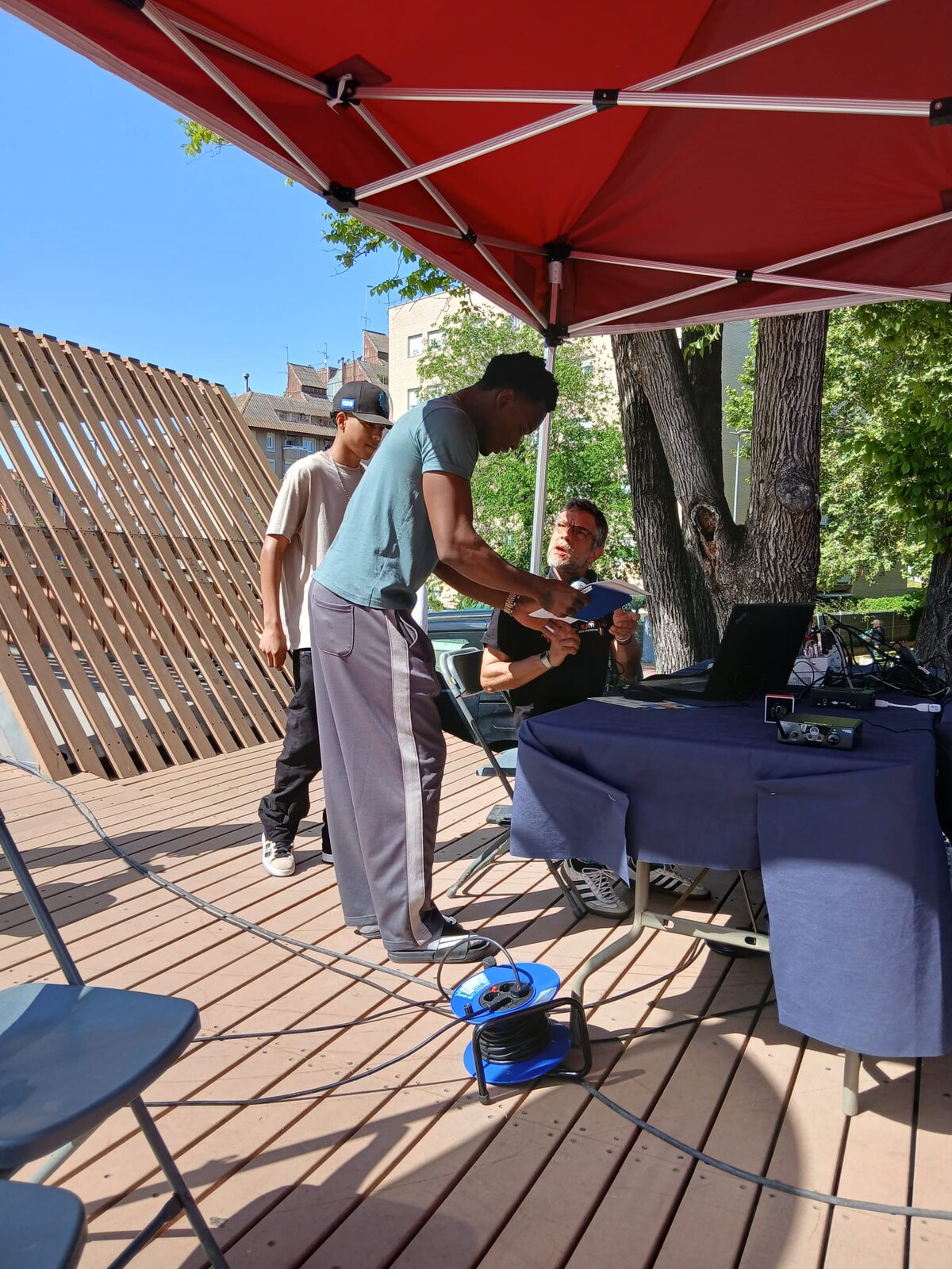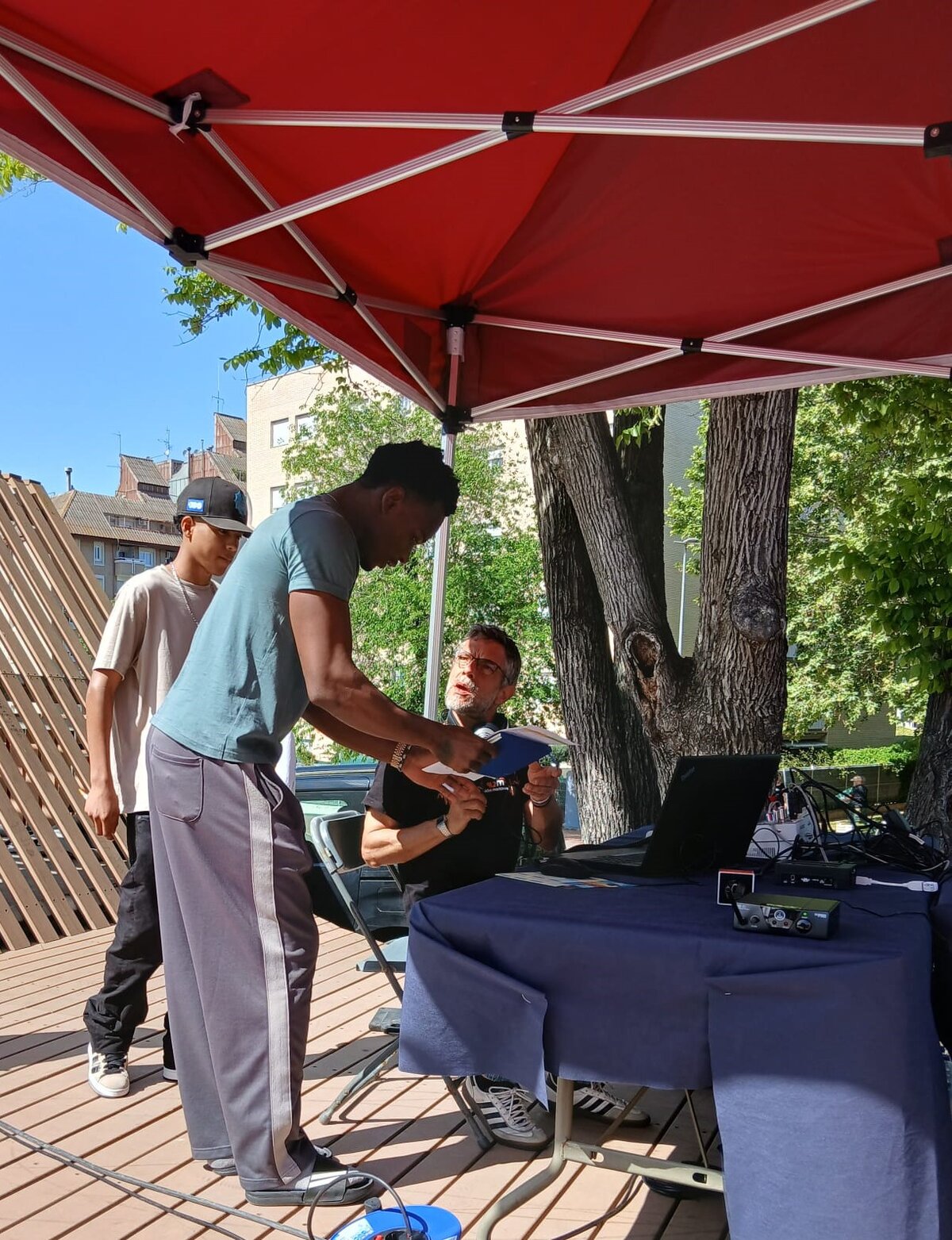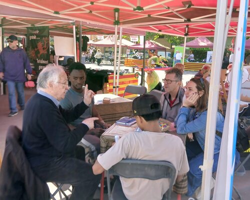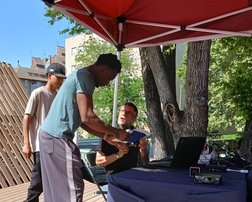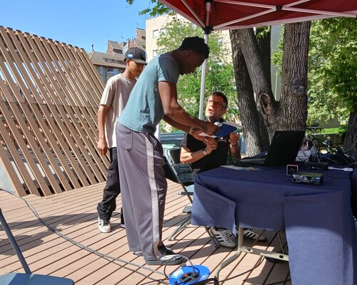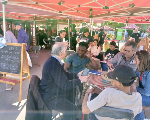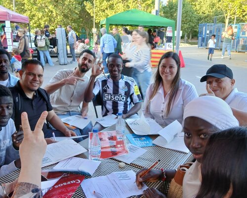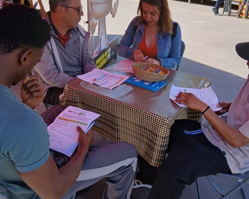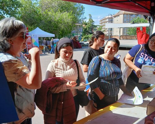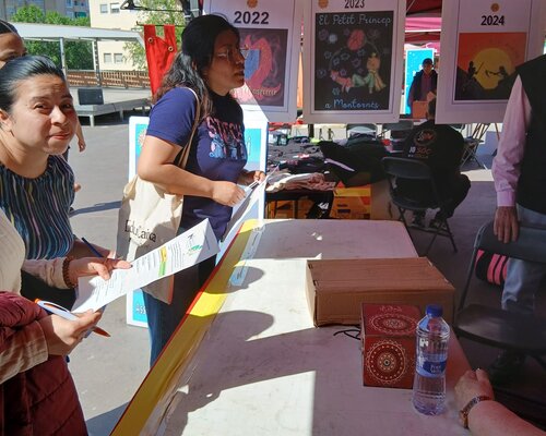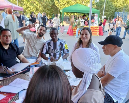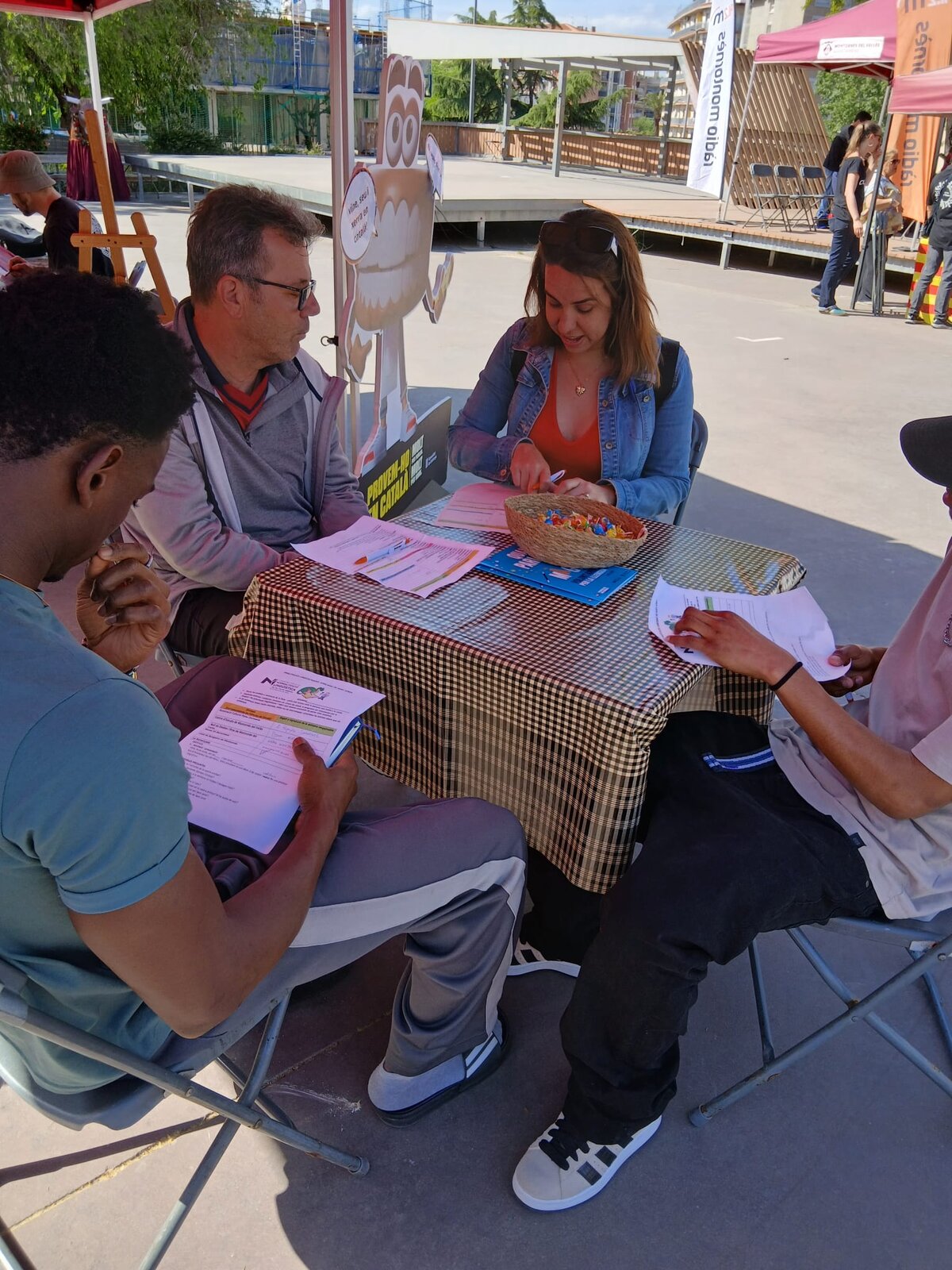 Al llarg del dia, els alumnes de Bàsic 2 van fer pràctiques lingüístiques. Tenien una llista de totes les entitats i comerços situats a la plaça i havien d'intentar fer com més pràctiques lingüístiques millor. Havien de parlar sobretot amb entitats, però eren lliures d’anar a les parades de les botigues. La persona que els atenia havia de signar-los el full on duien tots els noms.