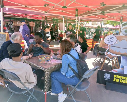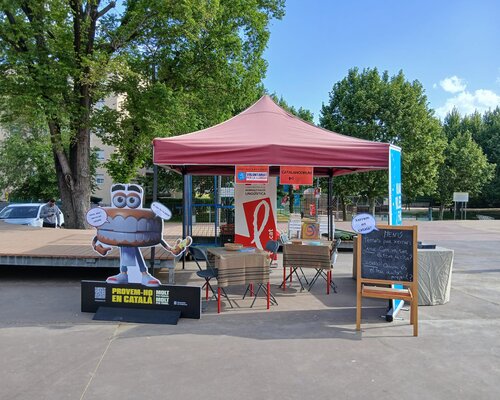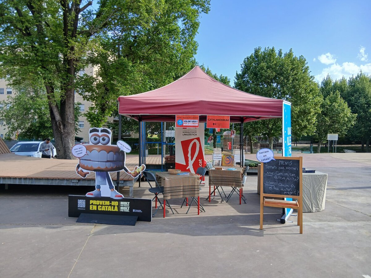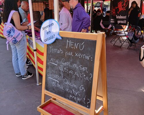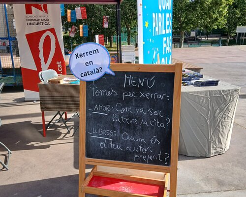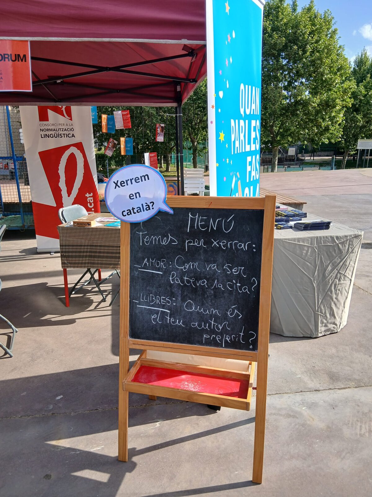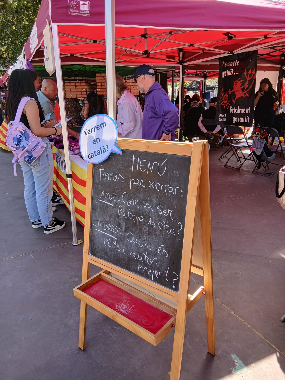 Com si es tractés d’un bar, també s’hi va col·locar una pissarra on s’indicava el menú. I en una taula adjacent es van posar a l’abast de tothom que hi passava àlbums de la Queta, jocs de cartes, tríptics del Voluntariat per la llengua, dels cursos de català o del programa Tot Joc. Els àlbums de la Queta van tenir molt d’èxit.