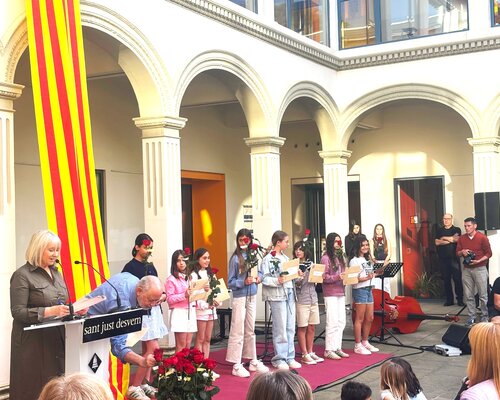 Lectures de poemes, activitats a l'aula, intervencions als mitjans locals i xerrades per celebrar Sant Jordi