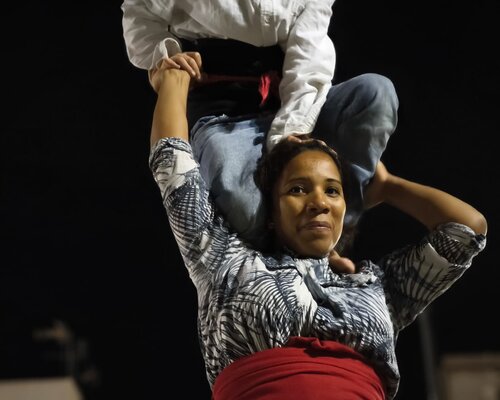 La colla castellera Els Laietans de Gramenet apadrinen l'alumnat del CNL L'Heura
