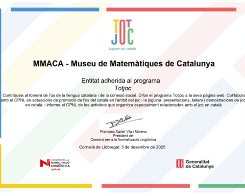 El Museu de Matemàtiques de Catalunya ha renovat les adhesions als programes Totjoc i Voluntariat per la llengua