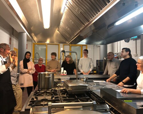 Taller de cuina per a alumnes a partir del nivell bàsic 3 i voluntaris i aprenents del Voluntariat per la llengua per tal que practiquin el català fora de l'aula.