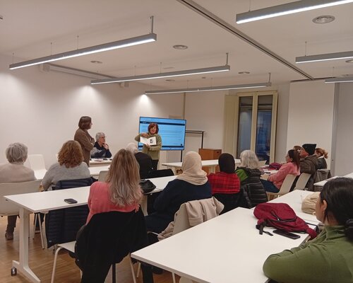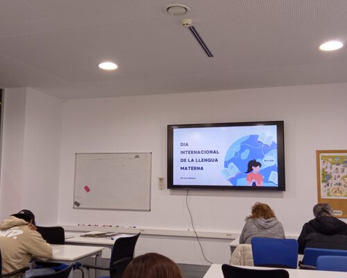 Els alumnes dels cursos de català assisteixen a una xerrada sobre el Dia de la Dona