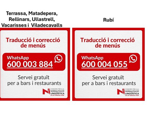 El Servei d’Assessorament Lingüístic (SAL) de Terrassa i el de Rubí continuen treballant per afavorir la presència del català a la restauració