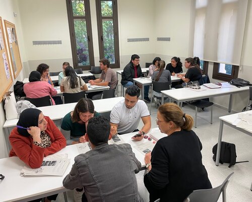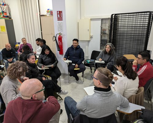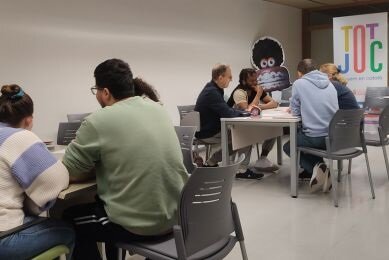 Els alumnes del Bàsic 1 de Cervelló fan una pràctica lingüística amb el director del CNL Baix Llobregat Nord