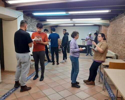 Els alumnes del Bàsic 1 practiquen les hores en català entre els companys i les companyes