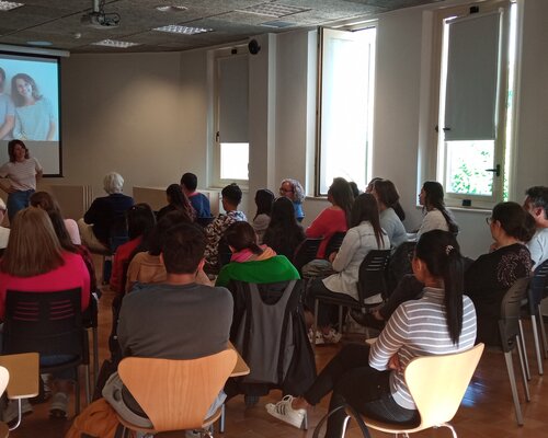 Els alumnes de català del tercer trimestre del curs 22-23 han rebut a l'aula la visita de la tècnica de Nova Ciutadania i Polítiques Migratòries de l'Ajuntament de la Llagosta, Carme Ferrer.
