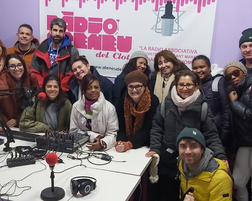 Aquesta setmana, el primer d'una sèrie de grups dels cursos de català que es fan a la Delegació de Sant Martí ha visitat la Ràdio de l'Ateneu del Clot i han pogut fer de locutors de ràdio per un dia.
